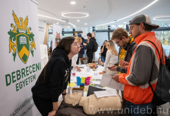 Autóipar, bankszektor, élelmiszer- és feldolgozóipar, csomagolástechnika – egyebek mellett ezen ágazatok képviselőivel találkozhattak a Debreceni Egyetem Gazdaságtudományi Kar, valamint a Mezőgazdaság-, Élelmiszertudományi és Környezetgazdálkodási Kar hallgatói kedden a Böszörményi úti campuson. A Duális Fórumon a leendő mesterszakos hallgatók a partnercégek gyakorlati lehetőségei közül válogathattak.