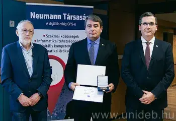 A hazai informatika kiemelkedő kutatóinak és oktatóinak tevékenységét ismerte el legutóbbi éves konferenciáján a Neumann Társaság. Az eseményen Kalmár-díjat vett át kimagasló szakmai munkája elismeréseként Fazekas Attila, a Debreceni Egyetem Informatikai Kar Számítógéptudományi Tanszékének egyetemi docense.