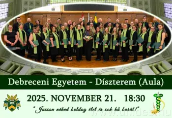 A Debreceni Egyetem MediChoir Hallgatói Kórusa novemberben ünnepli megalapításának 15. évfordulóját, a jubileum alkalmából tartanak önálló koncertet 21-én, pénteken. Az előadáson többek között Kodály Zoltán, Daróci-Bárdos Tamás, Karl Jenkins, John Williams és Leonard Cohen művei csendülnek fel. A koncerten egyéni produkciók is elhangzanak például Chopin és Bach szerzeményeiből.